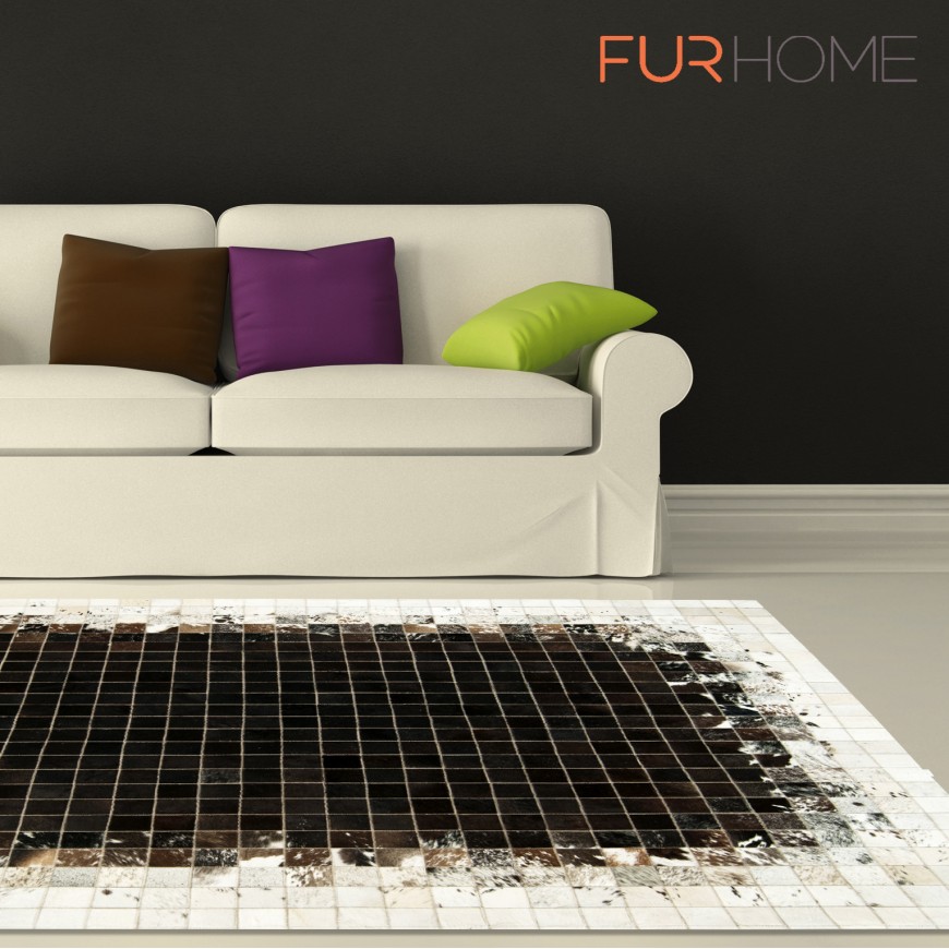 Δερμάτινο Χαλί Τρίχρωμο Μωσαϊκό Καφέ-Άσπρο-Μαύρο k-1811