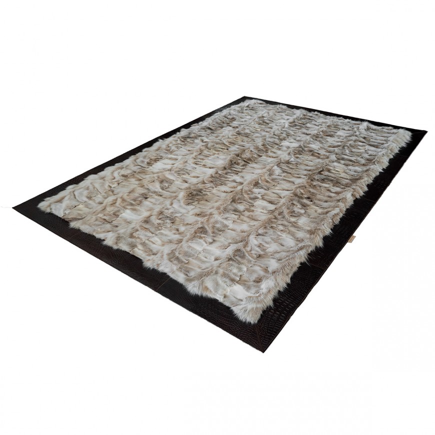 Γούνινο Χαλί Sevron Fox Άσπρο Μπεζ με Δέρμα Κροκό k-1124